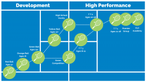 Our goal in the Development Level is to teach students how to play tennis. We use a “Game Based Model” (GBM) that introduces skills as part of playing the game. We follow a youth progression pathway that uses low compression balls (red, orange, green and the traditional yellow), proper sized courts and equipment and modified scoring that enables children to play tennis faster. The program is designed to introduce tennis and improve children’s self-confidence and athletic skills while they learn basic tennis technique.